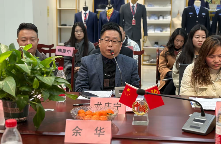 红冠服饰总经理李红兵向与会嘉宾介绍企业发展历程、品牌特色与市场布局,重点分享了公司在智能化生产、数字化管理、规模化定制方面的升级实践,展现本土职业装企业的创新路径与发展信心。各参会企业负责人依次发言,交流经营经验、展示企业优势、探讨合作机遇,现场氛围热烈务实。
